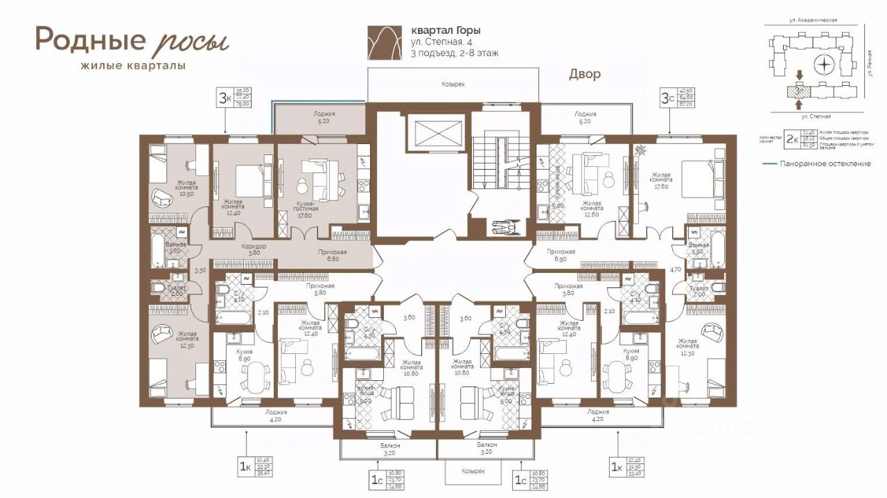 Продаётся 3-комнатная квартира в строящемся доме (Степная, 2), срок сдачи: IV-кв. 2027, общей площадью 74.8 кв.м., на 6 этаже. Новый жилой комплекс ''Родные росы'' от Специализированного застройщика ''Финпроект'' расположен в с. Фролы по ул. Академическая.