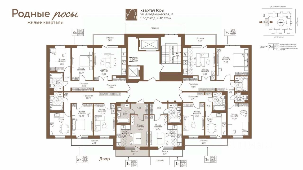 Продаётся 1-комнатная квартира в строящемся доме (Академическая, 9), срок сдачи: III-кв. 2027, общей площадью 24.66 кв.м., на 3 этаже. Новый жилой комплекс ''Родные росы'' от Специализированного застройщика ''Финпроект'' расположен в с. Фролы по ул. Академическая.