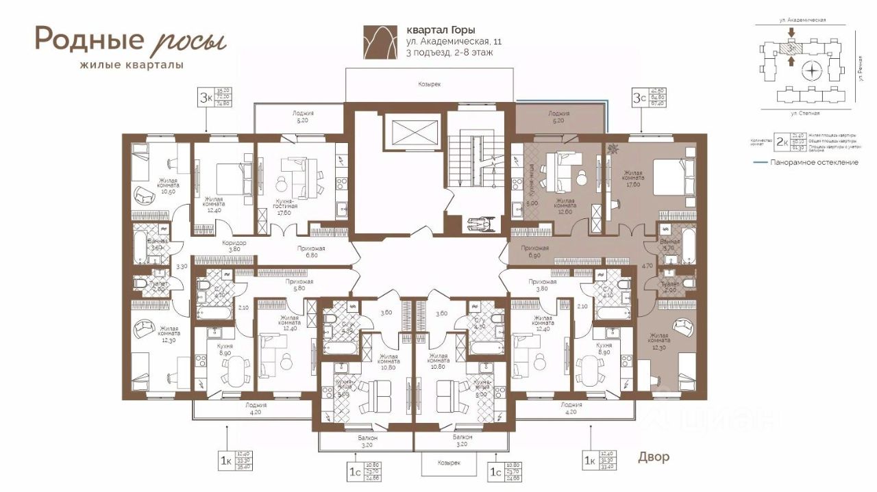 Продаётся 3-комнатная квартира в строящемся доме (Академическая, 9), срок сдачи: III-кв. 2027, общей площадью 67.4 кв.м., на 7 этаже. Новый жилой комплекс ''Родные росы'' от Специализированного застройщика ''Финпроект'' расположен в с. Фролы по ул. Академическая.