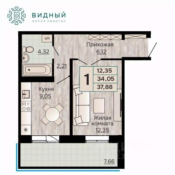 Продаётся 1-комнатная квартира в строящемся доме (корпус 2 (Кавказская, 13к2)), срок сдачи: II-кв. 2028, общей площадью 37.88 кв.м., на 7 этаже. Новый жилой комплекс ''Жилой квартал ''Видный'' от Специализированного застройщика ''СПК-Кавказская'' расположен по адресу: г. Пермь, ул. Кавказская, 13.