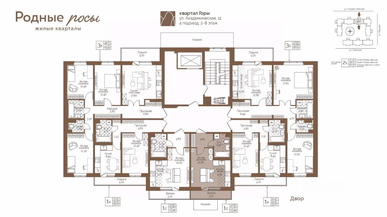 продам 1-к, Академическая, 94 163 841 ₽