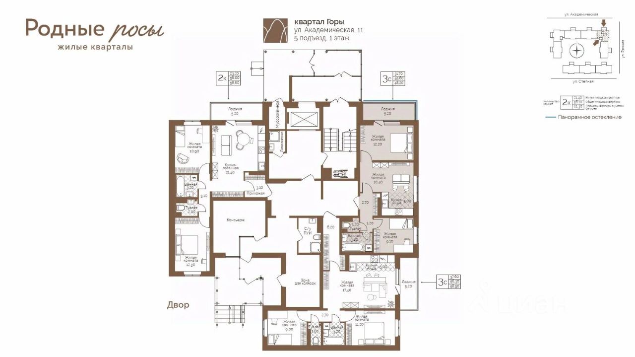 Продаётся 3-комнатная квартира в строящемся доме (Академическая, 9), срок сдачи: III-кв. 2027, общей площадью 48.2 кв.м., на 1 этаже. Новый жилой комплекс ''Родные росы'' от Специализированного застройщика ''Финпроект'' расположен в с. Фролы по ул. Академическая.