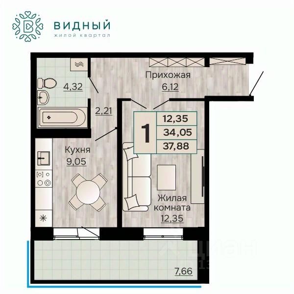 Продаётся 1-комнатная квартира в строящемся доме (корпус 2 (Кавказская, 13к2)), срок сдачи: II-кв. 2028, общей площадью 37.88 кв.м., на 5 этаже. Новый жилой комплекс ''Жилой квартал ''Видный'' от Специализированного застройщика ''СПК-Кавказская'' расположен по адресу: г. Пермь, ул. Кавказская, 13.