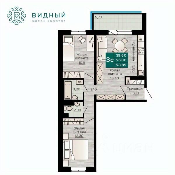 Продаётся 3-комнатная квартира в строящемся доме (корпус 2 (Кавказская, 13к2)), срок сдачи: II-кв. 2028, общей площадью 58.85 кв.м., на 8 этаже. Новый жилой комплекс ''Жилой квартал ''Видный'' от Специализированного застройщика ''СПК-Кавказская'' расположен по адресу: г. Пермь, ул. Кавказская, 13.