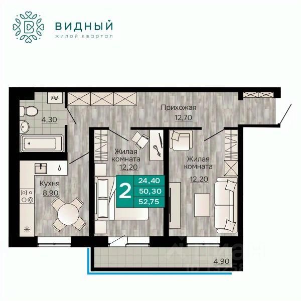Продаётся 2-комнатная квартира в строящемся доме (корпус 2 (Кавказская, 13к2)), срок сдачи: II-кв. 2028, общей площадью 52.75 кв.м., на 6 этаже. Новый жилой комплекс ''Жилой квартал ''Видный'' от Специализированного застройщика ''СПК-Кавказская'' расположен по адресу: г. Пермь, ул. Кавказская, 13.