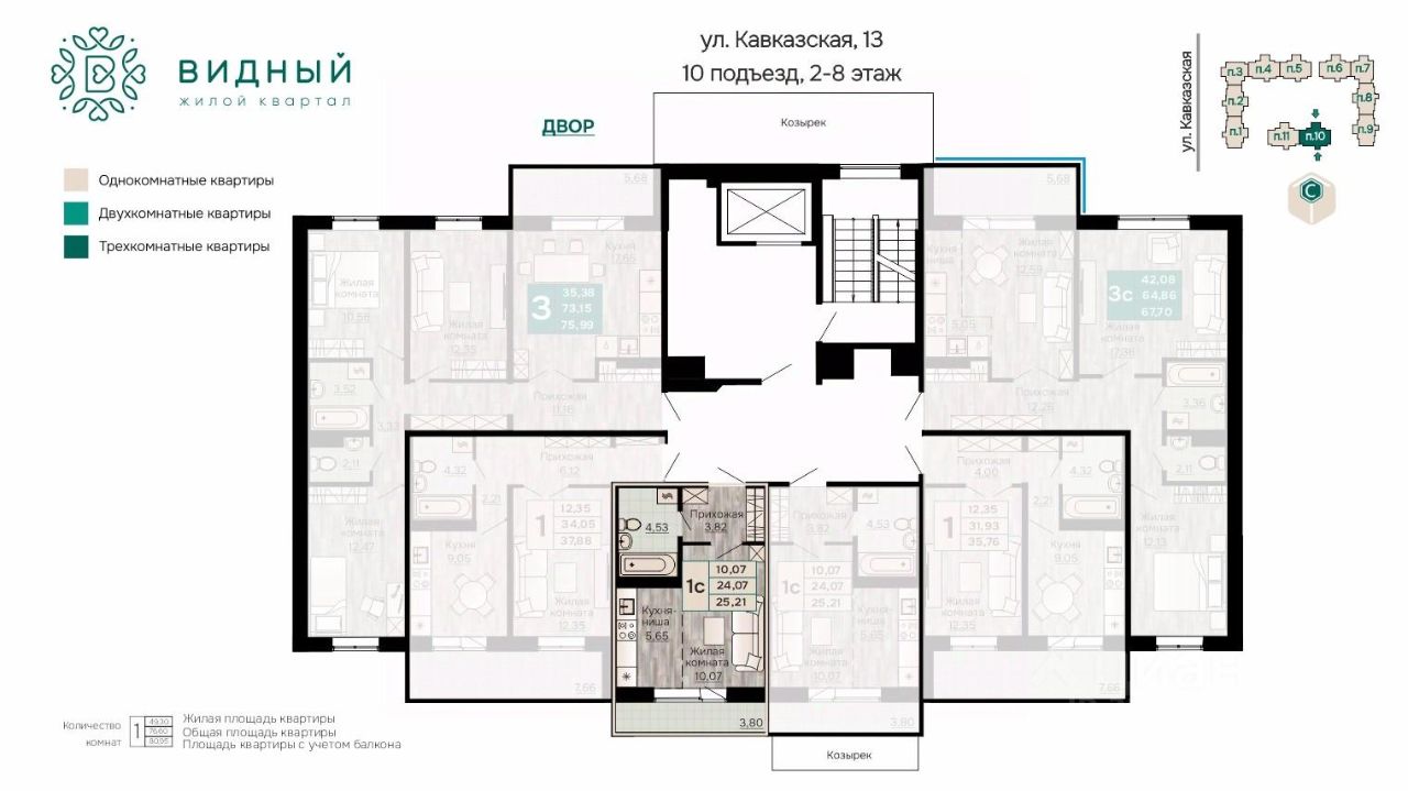 Продаётся 1-комнатная квартира в строящемся доме (корпус 2 (Кавказская, 13к2)), срок сдачи: II-кв. 2028, общей площадью 25.21 кв.м., на 7 этаже. Новый жилой комплекс ''Жилой квартал ''Видный'' от Специализированного застройщика ''СПК-Кавказская'' расположен по адресу: г. Пермь, ул. Кавказская, 13.