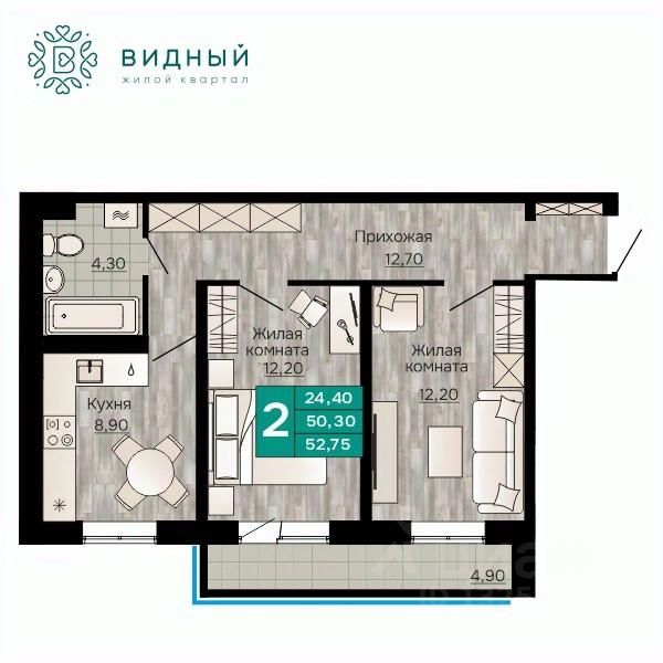 Продаётся 2-комнатная квартира в строящемся доме (корпус 2 (Кавказская, 13к2)), срок сдачи: II-кв. 2028, общей площадью 52.75 кв.м., на 7 этаже. Новый жилой комплекс ''Жилой квартал ''Видный'' от Специализированного застройщика ''СПК-Кавказская'' расположен по адресу: г. Пермь, ул. Кавказская, 13.