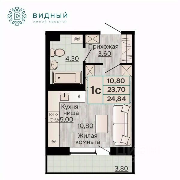 продам 1-к, Кавказская, 13 корп. 24 043 952 ₽
