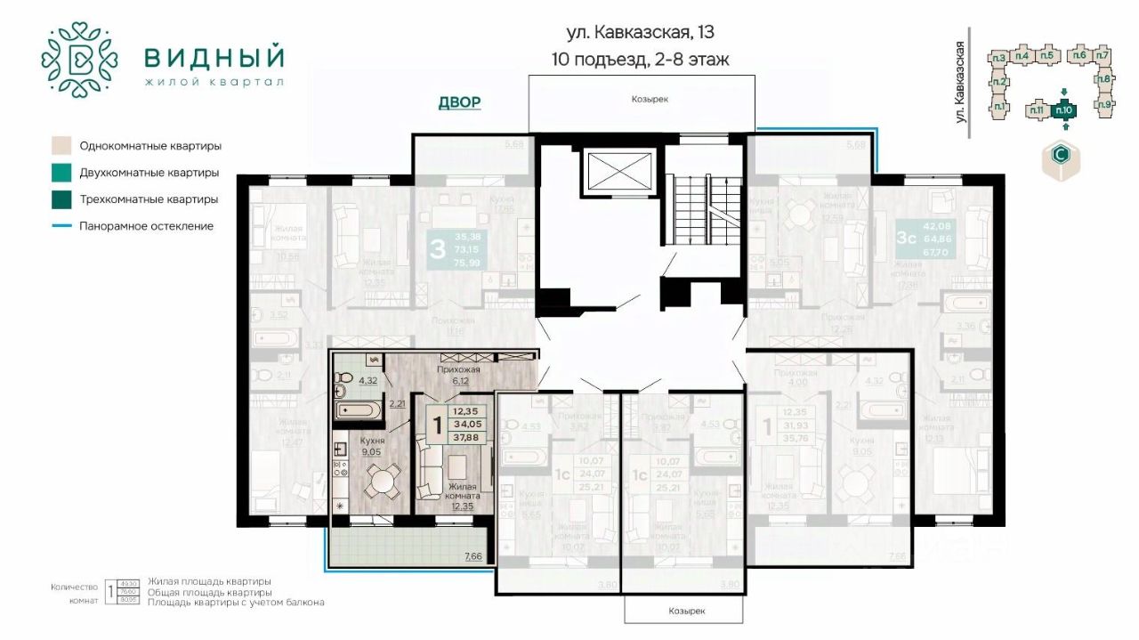 Продаётся 1-комнатная квартира в строящемся доме (корпус 2 (Кавказская, 13к2)), срок сдачи: II-кв. 2028, общей площадью 37.88 кв.м., на 7 этаже. Новый жилой комплекс ''Жилой квартал ''Видный'' от Специализированного застройщика ''СПК-Кавказская'' расположен по адресу: г. Пермь, ул. Кавказская, 13.