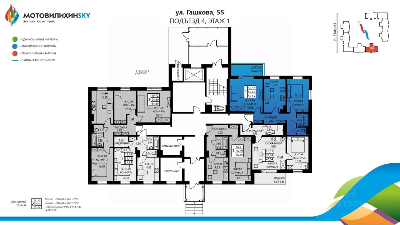 Продаётся 2-комнатная квартира в строящемся доме (Гашкова, 55 (позиция 12)), срок сдачи: I-кв. 2027, общей площадью 57.85 кв.м., на 1 этаже. Глобальный проект новостроек на Вышке-2 в Перми стартовал в 2012 году. Общая площадь застраиваемой территории - 21 га, объем строительства - 187 000 квадратных метров.