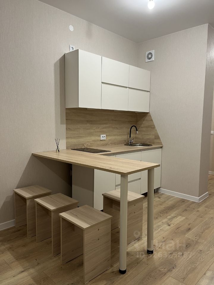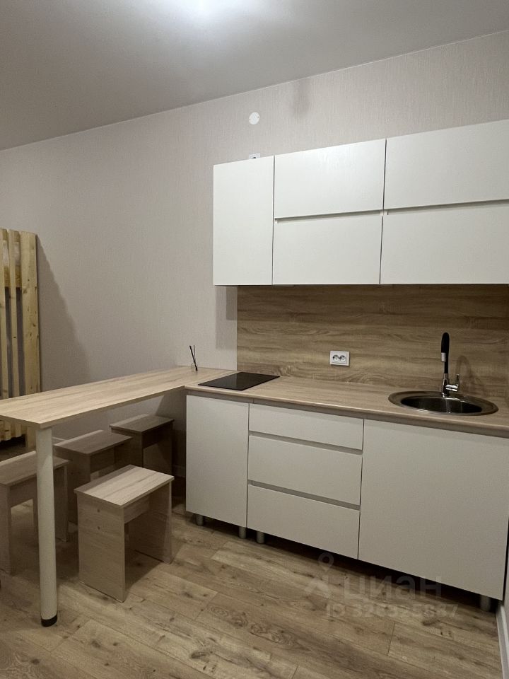 Студия оснащена новой, в светлых тонах кухней, с встроенной индукционной плитой. Спальное место - двухъярусная кровать с размерами 160х200. Сделана из натурального дерева. В прихожей установлен вместительный шкаф с антресолью для хранения вещей. Ванная комната совмещенная, выполнена в светлых, дизайнерских тонах. Вся мебель и техника новая!