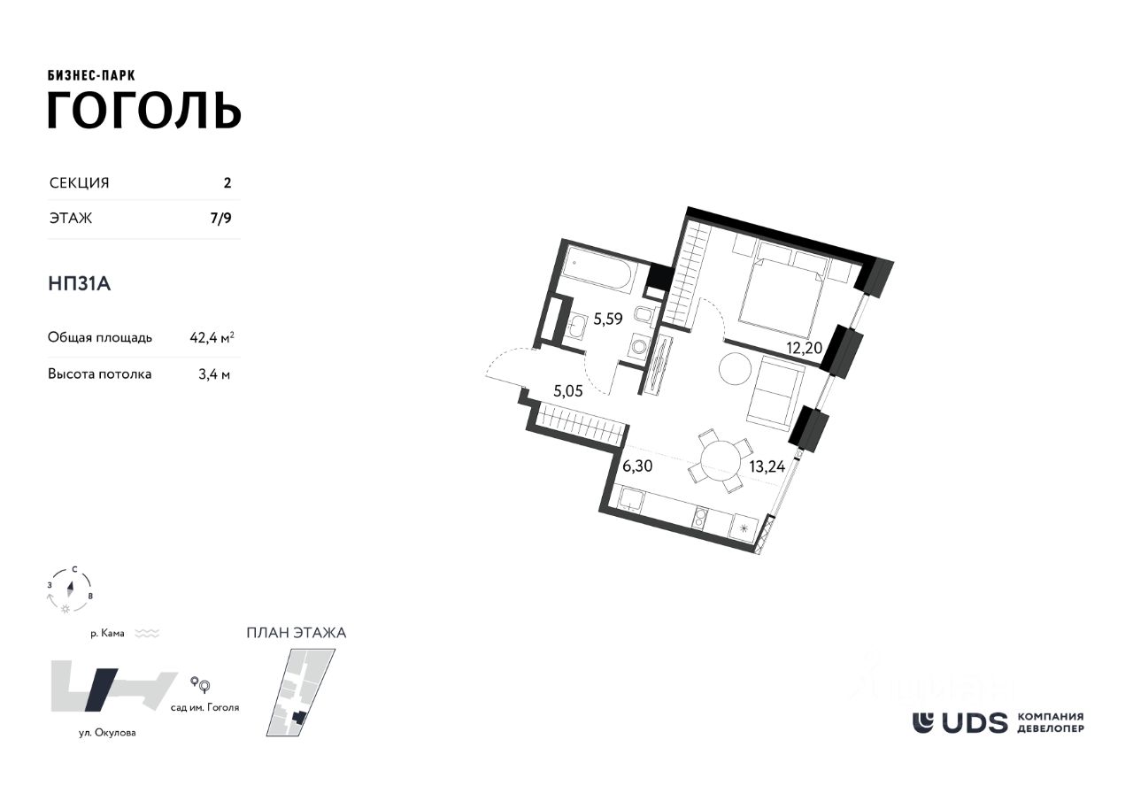 Расположенный в исторической части города, на первой линии Камы, ''Гоголь'' объединяет в себе энергию делового центра и спокойствие набережной.