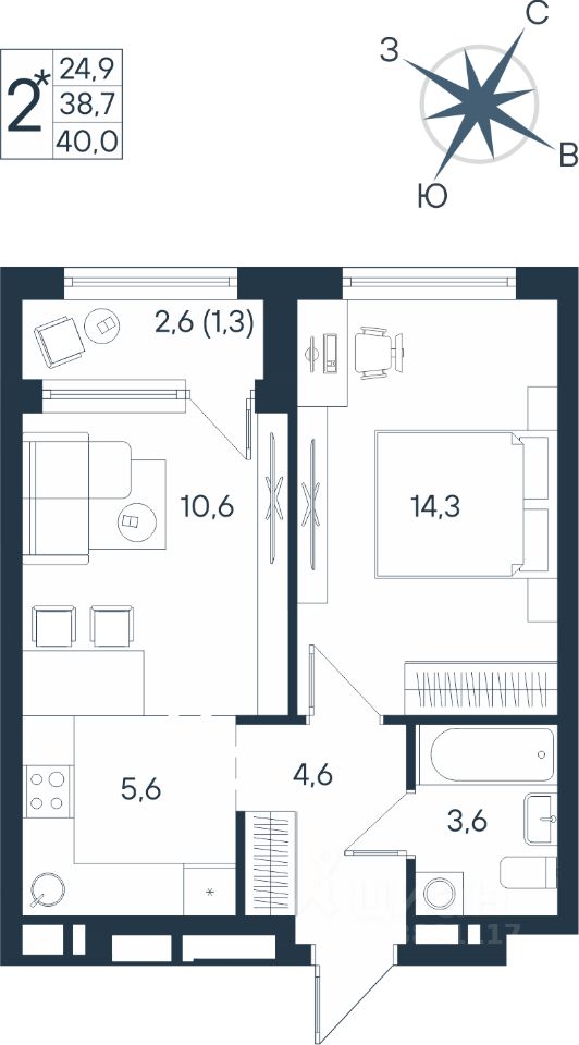 Продаётся студия в строящемся доме (Дом 17), срок сдачи: IV-кв. 2026, общей площадью 40 кв.м., на 4 этаже. Новый жилой комплекс ''ЮГ на Беляева'' от Специализированного застройщика ''Беляева 17'' расположен по адресу: г. Пермь, улица Космонавта Беляева.