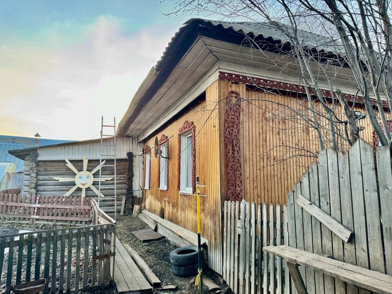 Бревенчатый , 3 комнаты , кухня, прихожая . Окна ПВХ. Дом газифицирован,водопровод, местная канализация( железная бочка) .