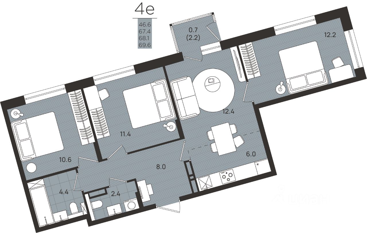 Общая площадь68,1 м2