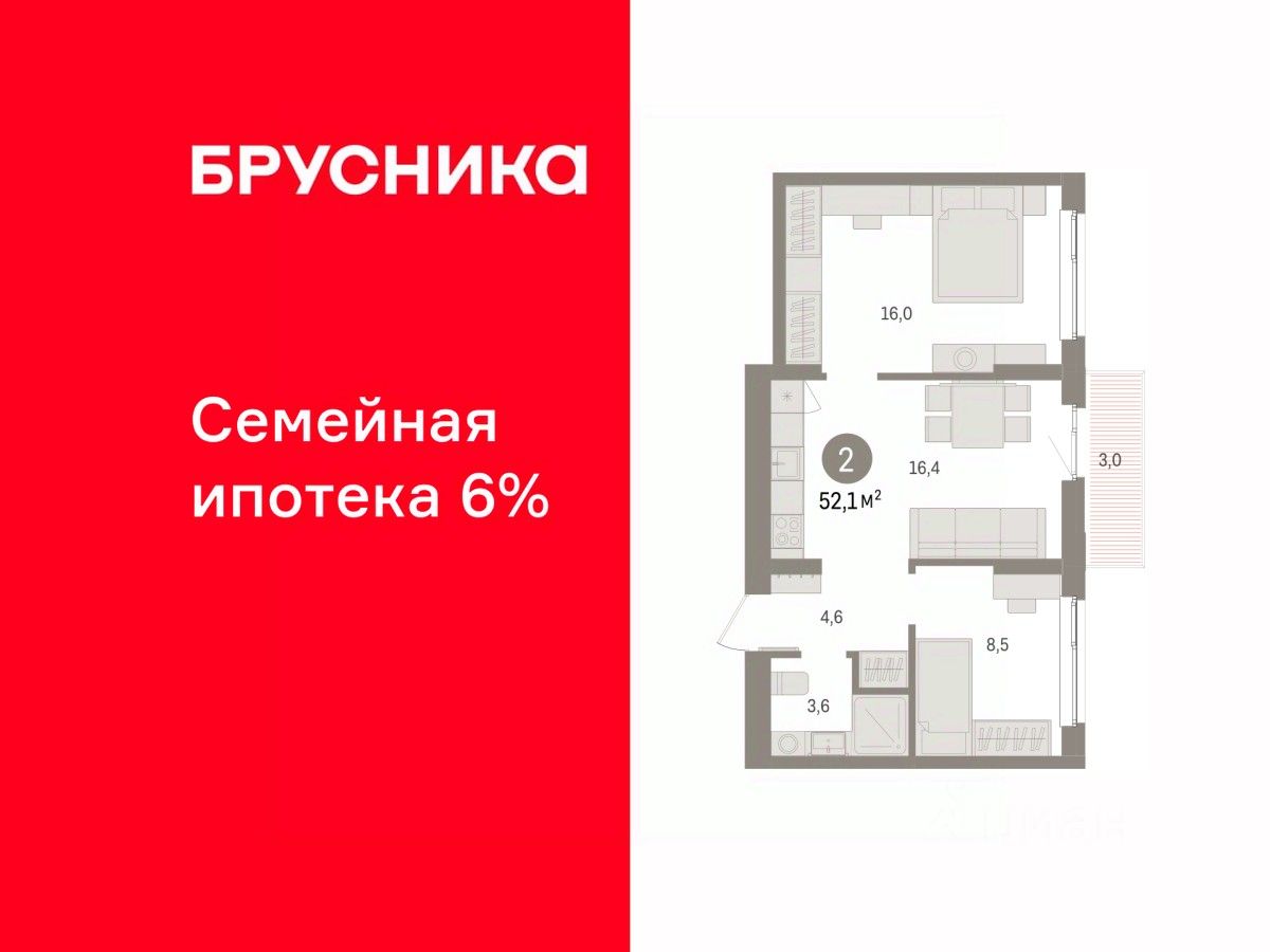 Продается 2-комн. квартира от застройщика с предчистовой отделкой в ЖК ''Квартал ''Юность'''' на 8 этаже. Общая площадь: 52.08 кв.м., жилая: 24.5 кв.м., площадь просторной кухни-гостиной: 16.4 кв.м. Комнаты изолированные, все окна выходят на одну сторону. В квартире один балкон, один совмещенный санузел. Высота потолков 2.7 м.