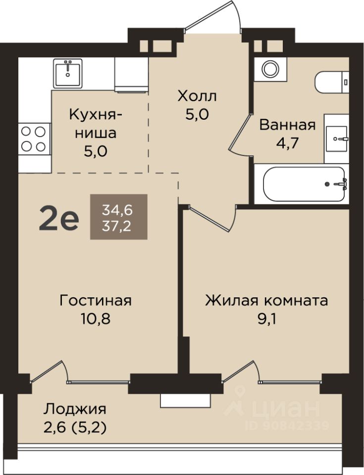 Общая площадь37,2 м2