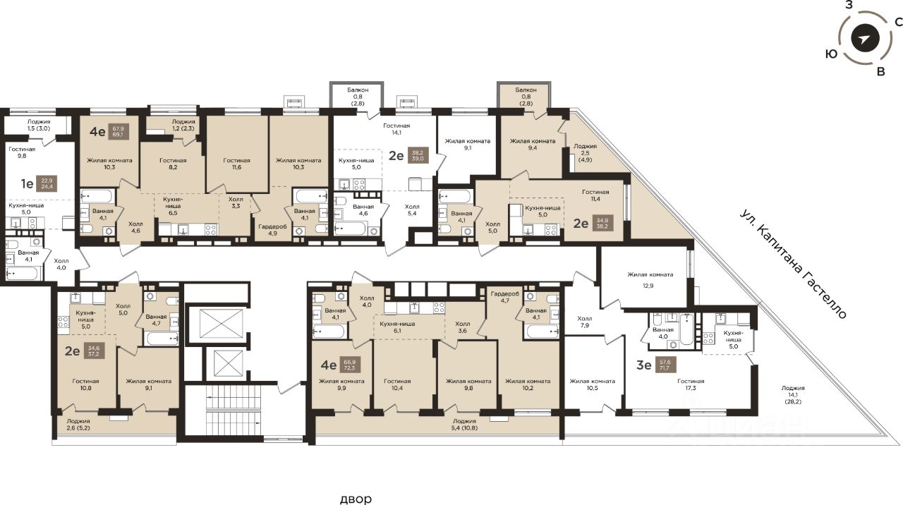продам 2-к, Капитана Гастелло, 216 677 400 ₽