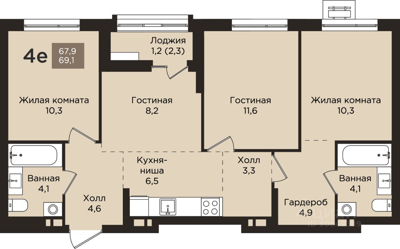 Общая площадь69,1 м2