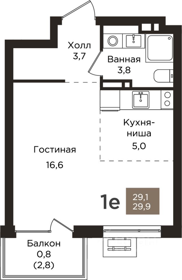 Общая площадь29,9 м2