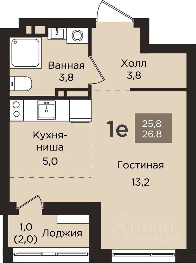 Общая площадь26,8 м2