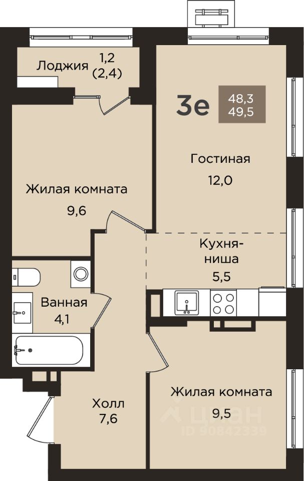 Общая площадь49,5 м2