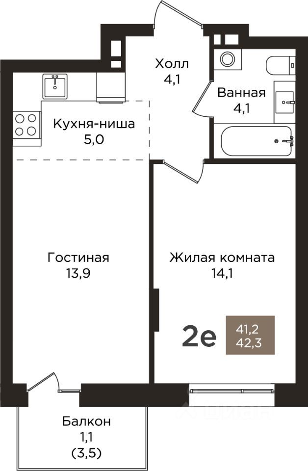 Общая площадь42,3 м2