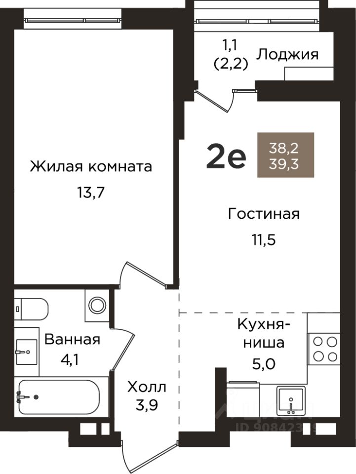 Общая площадь39,3 м2