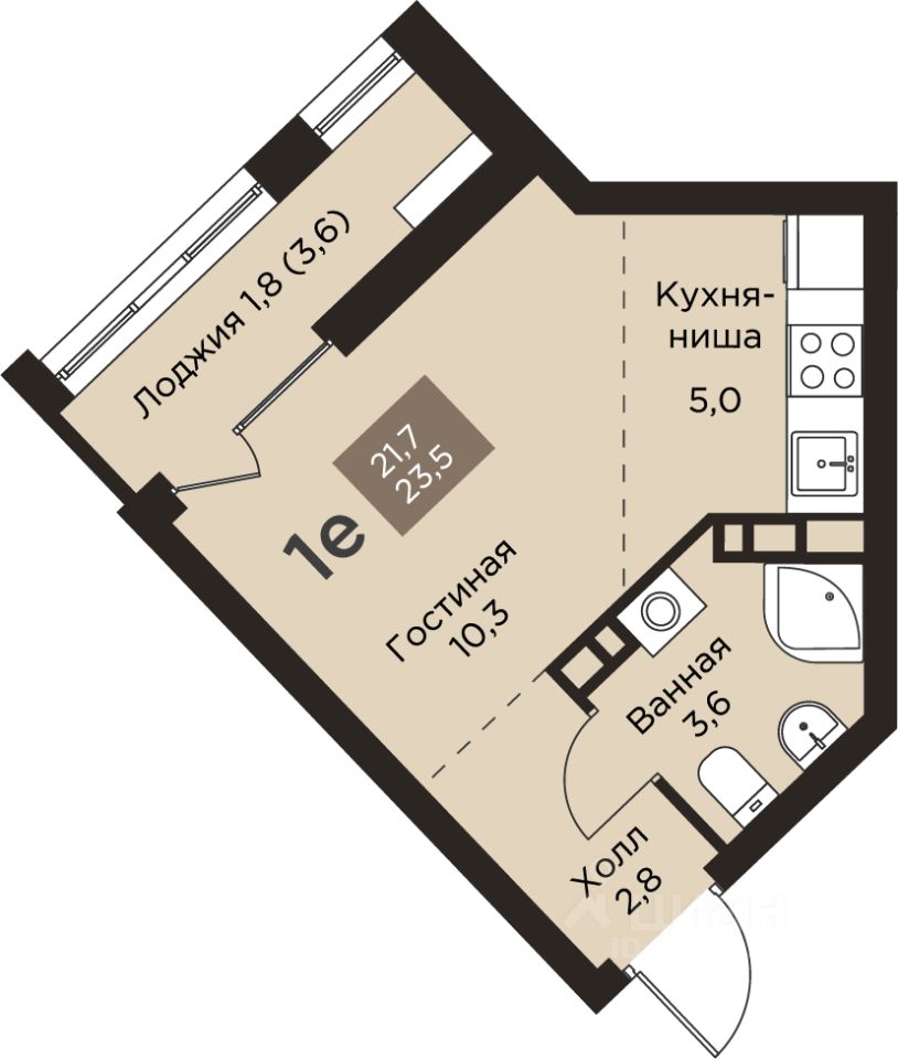 Общая площадь23,5 м2