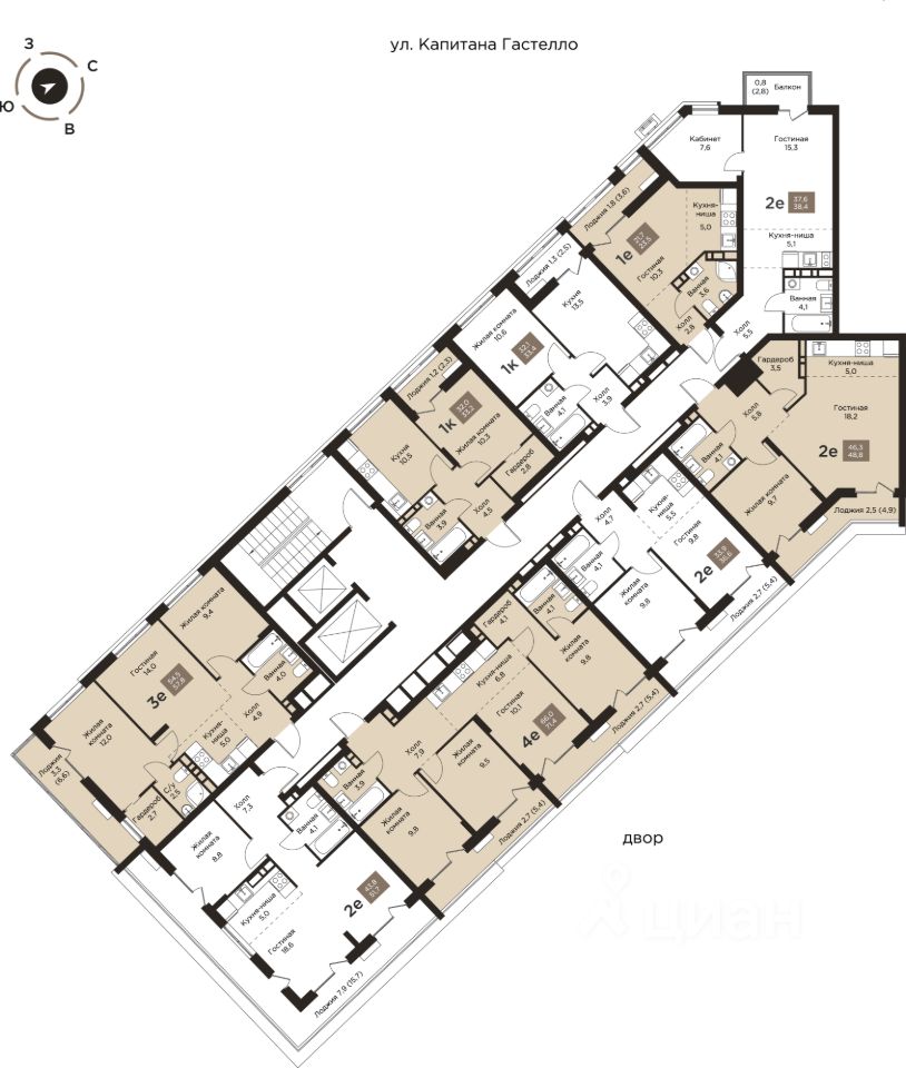 продам 1-к, Капитана Гастелло, 214 394 500 ₽