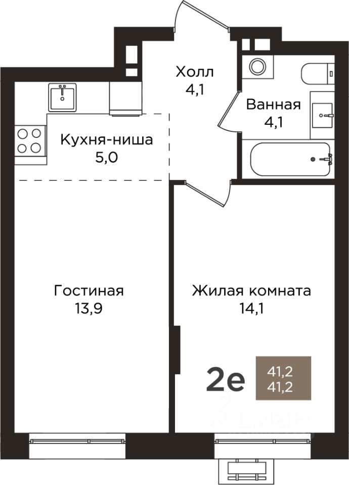 Общая площадь41,2 м2