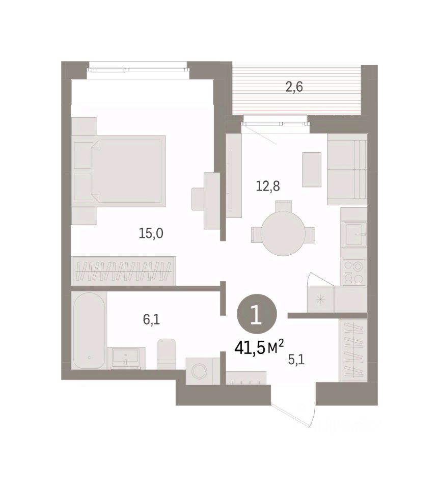 Квартира с кухней-гостиной и одной спальней в квартале ''Юность''. Особенности планировки: лоджия. квартиры в нашей базе: ЮСТ01-Ж1.10.5.