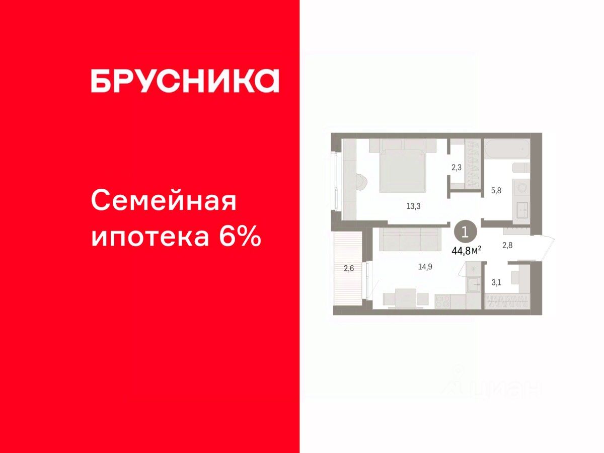 Общая площадь44,8 м2