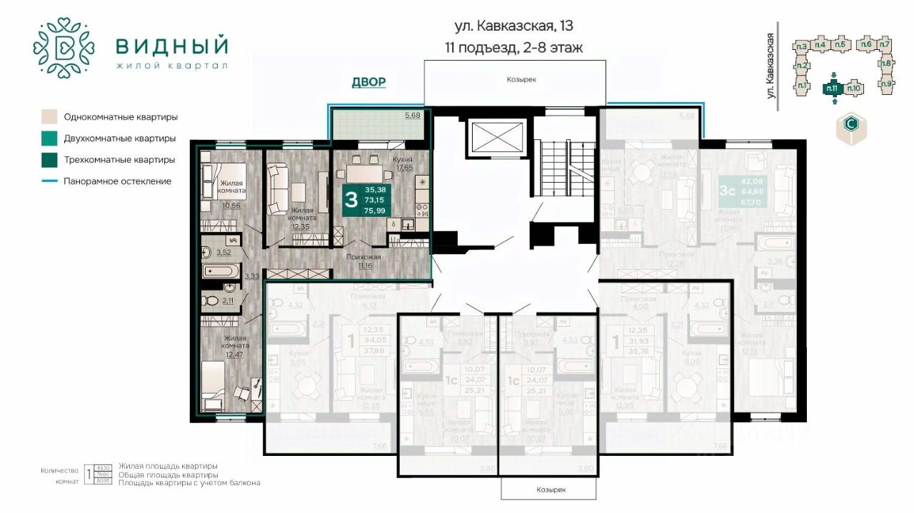 1.''Видный'' сочетает в себе семейную атмосферу, традиции и современную архитектуру с элементами клубного дома. 2.В шаговой доступности находятся школы, детские сады, медицинские учреждения, скверы, крупные торговые сети и многое другое. 3. В 15 минутах от ЖК благоустроенный пляж! 4. Все 3 корпуса ЖК ''Видный'' возводятся по технологии ''97 серия'' панельного домостроения, что обеспечивает энергоэффективность, надежность, долговечность! 5. Малоквартирный дом - по 6 квартир на этаже. Вы будете знать всех соседей в лицо! 6. Пространство вокруг ЖК тщательно благоустроено: большой двор, разнообразные игровые площадки, зоны для фитнеса и отдыха.