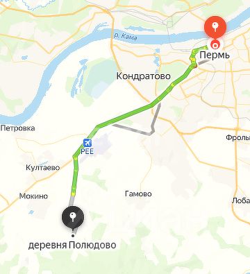 Земельный участок находится рядом с деревней Полюдово . Расстояние до центра города в районе 28 км или 37 минут езды на машине на автомобиле по трассе где не бывает пробок при выезде из Перми.