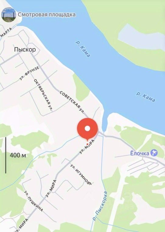 Продается отличный земельный участок в с. Пыскор, по улице Мира, 1 Живописное место, рядом р. Кама