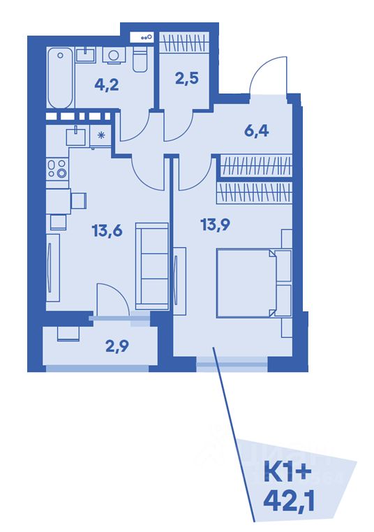 Общая площадь42,1 м2
