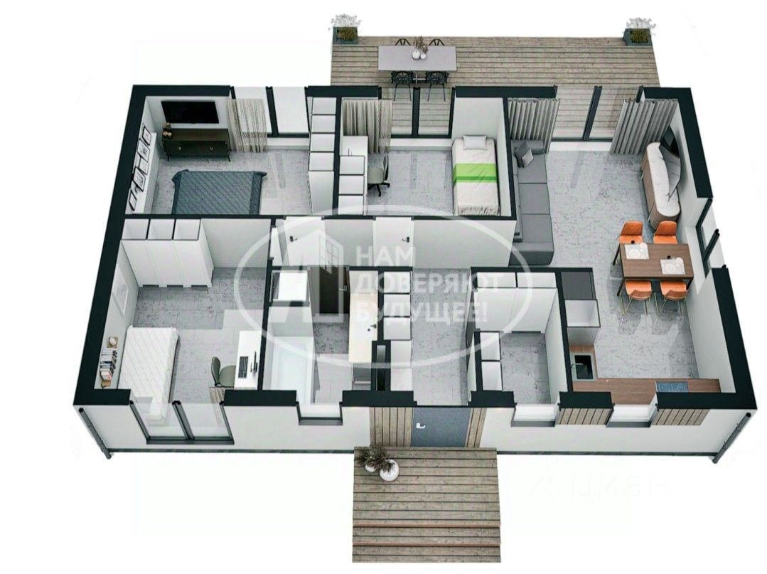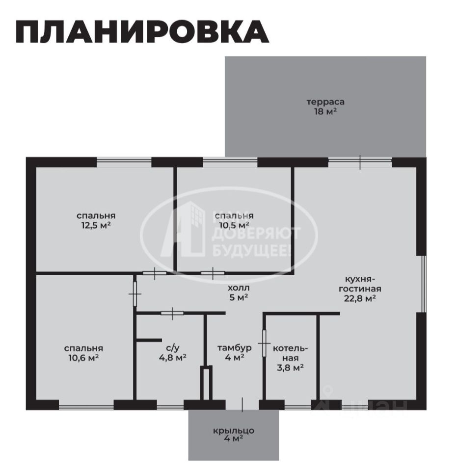 Дом из газобетона по типовому проекту. Площадь дома 80 кв.м. 1 этаж, 4 комнаты, 3 метра высота потолков.