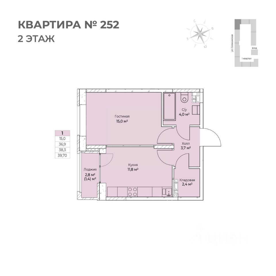 Продаётся 1-комнатная квартира в строящемся доме (I этап), срок сдачи: IV-кв. 2026, общей площадью 39.7 кв.м., на 2 этаже. Новый жилой комплекс ''Ветлан'' от застройщика ''Пермит'' расположен в г. Пермь на ул. Ивана Франко.