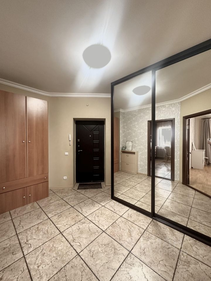 В прихожей установлен большой шкаф купе с зеркалами, отдельный шкаф поменьше, обувница. Также предоставлены утюг, гладильная доска, сушилка, тепловая пушка, предметы быта (ведра, тазы и пр).