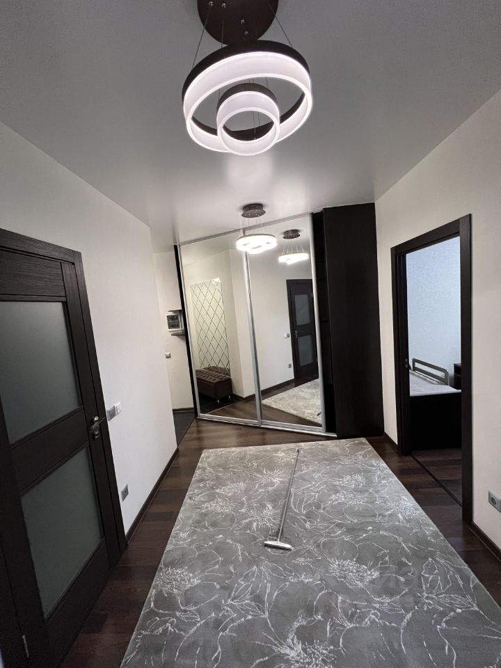 Сдается в аренду просторная двухкомнатная квартира площадью 70 кв. м на 14-м этаже современного 18-этажного дома, построенного в 2008 году. Квартира располагает жилой площадью 55 кв. м и кухней в 12.2 кв. м, обеспечивая комфортное проживание в уютной обстановке. Высота потолков составляет 2.7 метра, что добавляет ощущения простора.