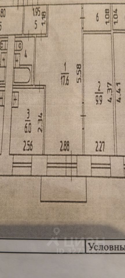 Общая площадь: 41,2 м2, без учета балкона. Площадь кухни: 6 м2
