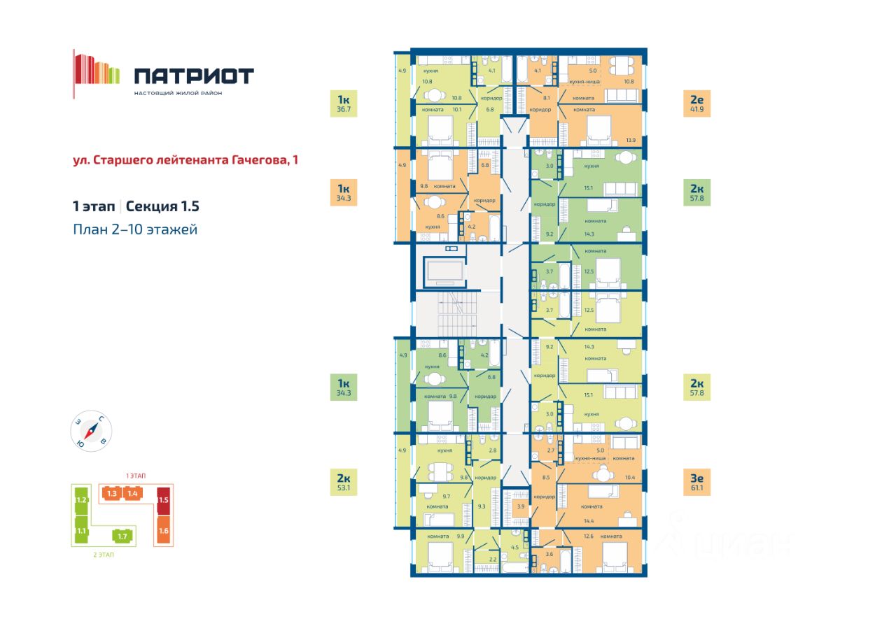 ИПОТЕКА ДЛЯ ВСЕХ от 13,4% на весь срок (только до 31 марта)! - Семейная ипотека от 4,5% на весь срок (до 30.06.2026г.) - Ипотека 10,5% для всех (до 31.03.2026), - Скидка 2% на приобретение квартир при стопроцентной оплате (до 31.03.2026) - Материнский и жилищный сертификаты, - Скидка 3% участникам СВО на все объекты до 31.03.2026), - Трейд- Ин до 31.06.2026) - ''Добрые дни от ПЗСП'' социальная скидка до 3% (до 31.08.2026) - Скидка за каждого ребёнка (до 31.08.2026) - ''Альтернативная ипотека'' 12% на готовые квартиры (до 30.04.2026) - Бесплатное такси до офиса продаж Расположение и транспорт: - Пересечение ул. Целинной и Кузнецкой. - Всего 20 минут до центра. Удобный выезд на основные магистрали (Соликамская, Целинная) в разные районы города. - Новая дорожная сеть с выездами на ул. Кузнецкая и Гашкова, новые автобусные остановки. Комфорт и безопасность: - Современные планировки: просторные кухни, гостиные, санузлы и коридоры с гардеробными, - Безбарьерная среда: входные группы на одном уровне с тротуаром, - Безопасность: консьерж, видеонаблюдение, теплые двойные тамбуры, - Технологии: управление домофоном и просмотр камер со смартфона, - Тишина и комфорт: бесшумные скоростные лифты, современные уютные холлы. Инфраструктура и территория: - Благоустроенные дворы: большая и ухоженная придомовая территория, современные детские площадки. О первом этапе: Адрес: ул. Гачегова, 1. Этажность: 8-10 этажей. Срок сдачи: II кв. 2026 г. - III кв. 2026 г. Отделка: ПРЕДЧИСТОВАЯ (''whitе bох''). ЖК ''Патриот'' — по-настоящему комфортное и современное пространство для жизни.Застройщик: ООО ''СЗ ''ПЗСП Вышка-2''. Проектная декларация размещена на наш.дом.рф