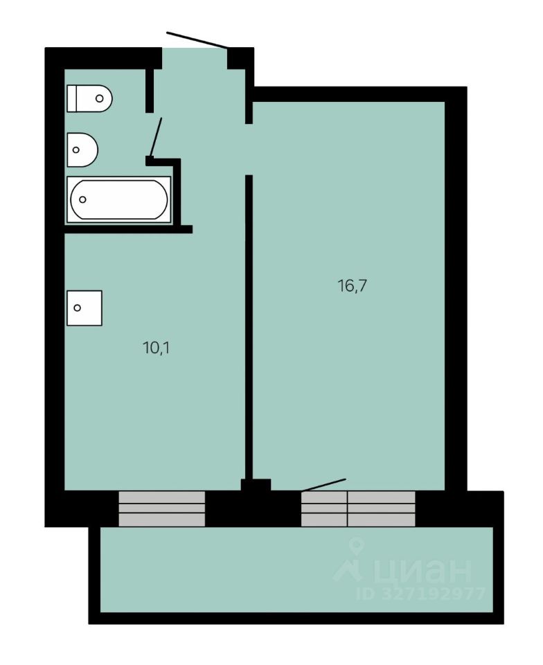 О квартире: Общая площадь 33 кв. м. + просторная лоджия (дополнительное место для отдыха или хранения). — Кухня (10 кв. м.): Мечта любой хозяйки. Остается стильный кухонный гарнитур и встроенная техника. — Жилая комната (16,7 кв. м.): Правильной формы. Оставляем диван, шкаф и тумбу под телевизор — можно заезжать и жить. — Санузел: Совмещенный, полностью в кафельной плитке.