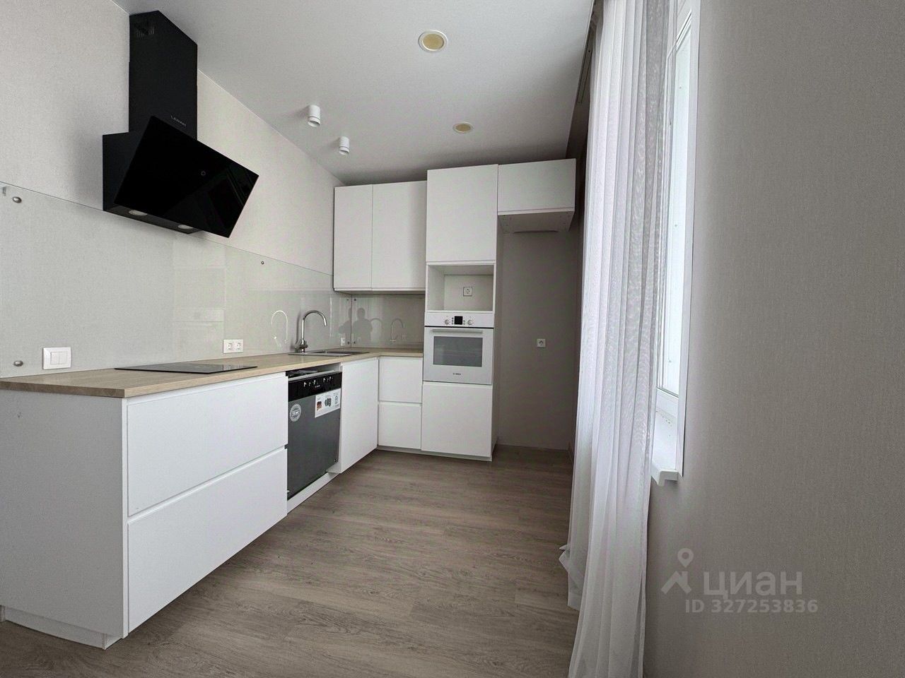 Всё, что вы видите на фото, остаётся: плита, духовой шкаф, вытяжка, посудомоечная машина, полностью укомплектованный санузел.