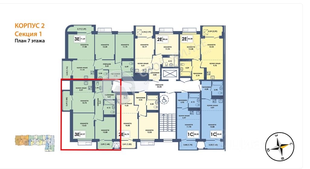 Общая площадь59,97 м2