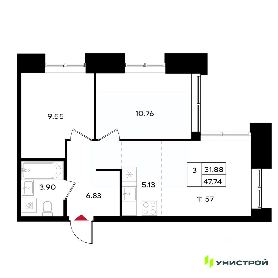 Общая площадь47,74 м2