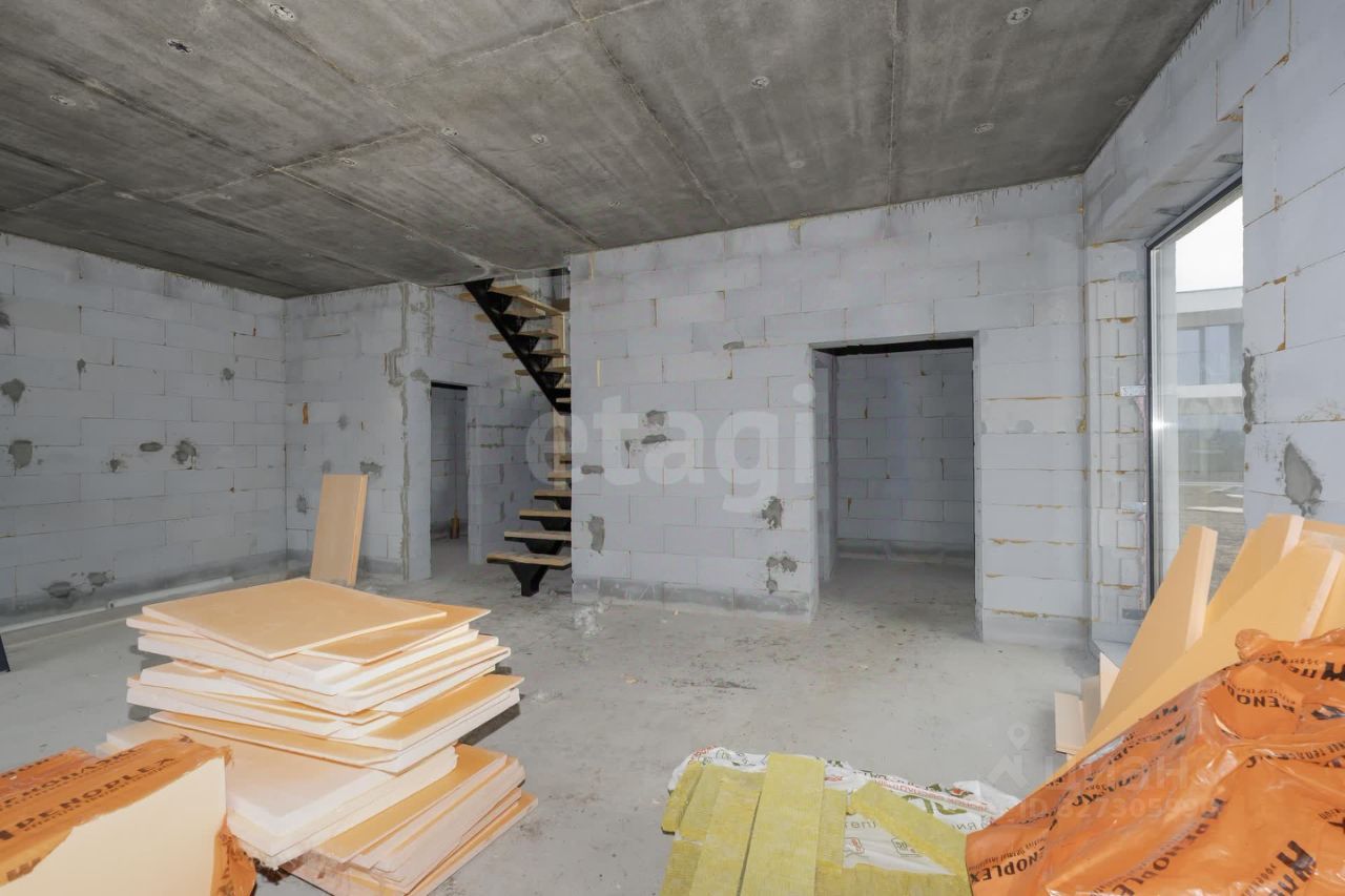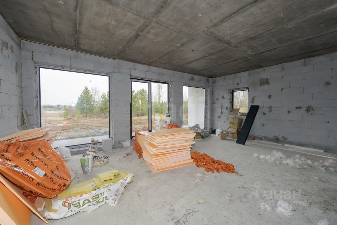 • 2 этаж — три уютные спальни , ванная и балкон с видом на сосны и воду . Дом построен из газоблока с утеплением, стоит на монолитной плите, крыша — железобетонная, плоская и утеплённая . Все коммуникации готовы: электричество, скважина, биосептик, газ — по границе участка.