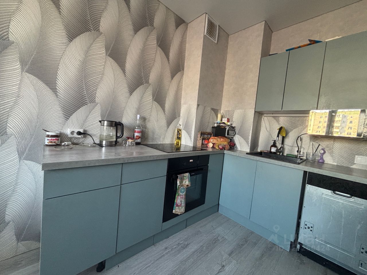 Останется: кухонный гарнитур с варочной поверхностью, обувница, большой открытый шкаф в коридоре