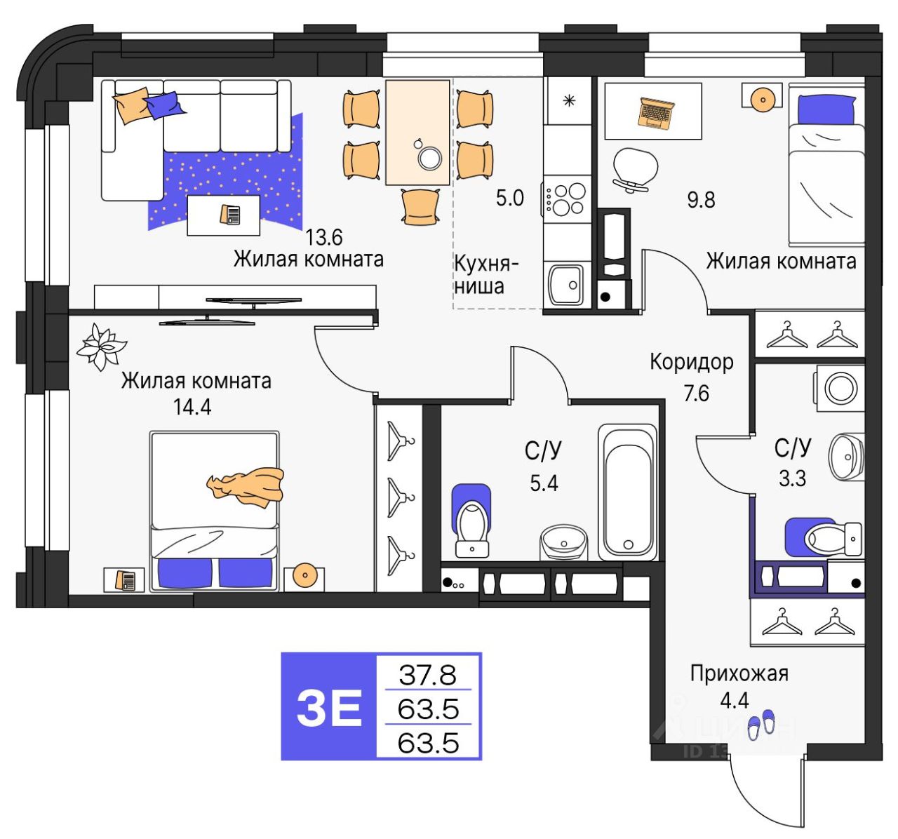 Продается 3- комнатная квартира 124 Выгода на квартиры в ЖК Моменты до 500 000 руб*
